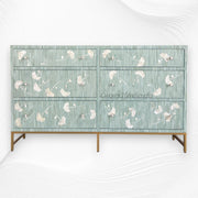 Ada Bone Inlay Chest of 6 Drawers Indigo Light Green