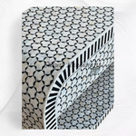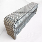 This stunning White Mother of Pearl Inlay Console Table by Luxury Handicrafts is a very special piece with sophisticated design and intricate carved MOP details. The gorgeous combination of black with shimmering mother of pearl has everlasting appeal and creates a relaxed bohemian elegance in your home.