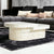 This room-anchoring coffee table boasts a dramatic bone overlay with a multi-height structure, perfect for displaying favorite books or offering spreads at a gathering.