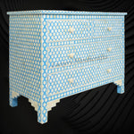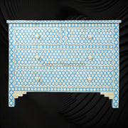 Bone Inlay Chest of Drawers Inverse Hexagon Aqua Blue
