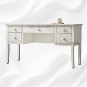 Bone Inlay Curved 5 Drawer Floral Desk White
