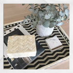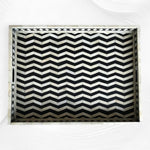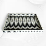 Supremely bold, this fabulous decorative tray is our new favorite thing. Featuring bone-inlay and grey hue, this ottoman tray is right at home on a countertop, vanity, coffee table or cheeky beverage cart.