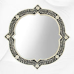 The Luxury of hand applied bone inlay is given a hint of modern styling to gorgeous effect in the lines and materials of this mirror. Perfect for a Hollywood Regency space, this mirror will add...