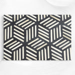 Our craftsmen have been using inlaid bone to decorate furniture surfaces, and for good reason it embodies a natural sheen that adds instant luxury to any space. This room-anchoring piece captures the essence of Optical stripe tile work with a reiterative bone inlay design on top to bottom.
