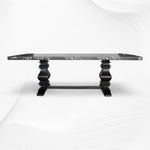 Create a dining space that you and your guests will adore with the stunning Bone inlay dining table. The table features a patterned bone inlay top that resembles ivory fauna stretching across a black backdrop. This Dining Table ensures your dining area makes a true impression.
