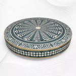 Bone inlay has a natural, earthy look with a matte finish, while Mother of Pearl inlay looks shiny and elegant with its iridescent glow. Both materials can be used for various patterns and can be applied to any furniture or homeware items in our online store.