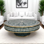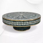 Since the days of ancient Egypt, craftsmen have been using inlaid bone to decorate furniture surfaces, and for good reason: it embodies a natural sheen that adds instant luxury to any space. Handcrafted using the same centuries-old technique at Luxury Handicrafts, this room-anchoring piece captures the essence of inlay work with a reiterative bone inlay design atop a cylindrical brass base.