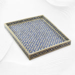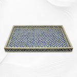 The intricate bone geometric pattern of this gorgeous tray was achieved by individually carving pieces and affixing them into a colourful Resin structured in solid wooden frame.