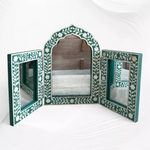 Isabelle Bone Inlay Floral Triple Mirror Green