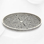 Large Round Bone Inlay Tray Floral Design Black