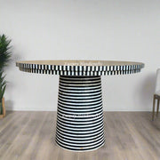 Layered Stripe Mother of Pearl Inlay Dining Table Black