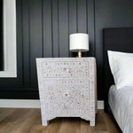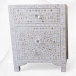 Mother Of Pearl Floral Inlay Large Drawer Bedside White