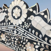A classic artistic piece by Luxury Handicrafts, this black bird mother of pearl inlay mirror is an excellent example of authentic Indian craftsmanship. Featuring elegant mosaics of birds surrounded by floral designs, this authentic Indian dressing table mirror would make a bold addition to any room.