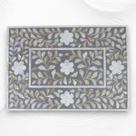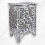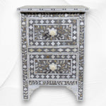 Mother Of Pearl Inlay Floral 2 Drawer Bedside Dark Grey