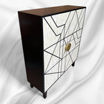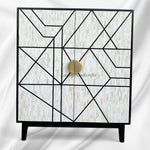 Featuring an ornately decorative and strikingly full bone inlay design, this gorgeous cabinet offers both storage and style.