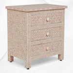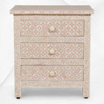 Pink Bone Inlay 3 Drawer Bedside Geometric