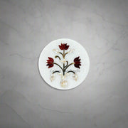 Key Features: # Size: 12" (Diameter) X 1" (Thickness) # Luxurious marble top with inlay of red carnelian, brass and white mop # Made from real carnelian stone, solid brass and quality white mop #...