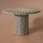 Indian handmade round dining table crafted on an solid wood base, covered with a meticulous bone and resin marquetry technique.