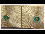 This Classic Brass Embossed 4 Door Cabinet is the perfect example of artisan craftsmanship. Featuring a hand-hammered brass surface with subtle cross patterning, this four-door cabinet also includes an drawers and internal shelf to house all your possessions. Hand Hammered Four Door Cabinet With Shelf, Drawers, hydraulic hinges and elegant Cross Pattern On Doors.