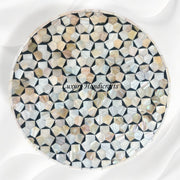 A side of style to elevate your décor. Our designer targua design mop inlay side table in black. Can be used as an end table or a stool. Key Features: # Size: 14" (Diameter) X...